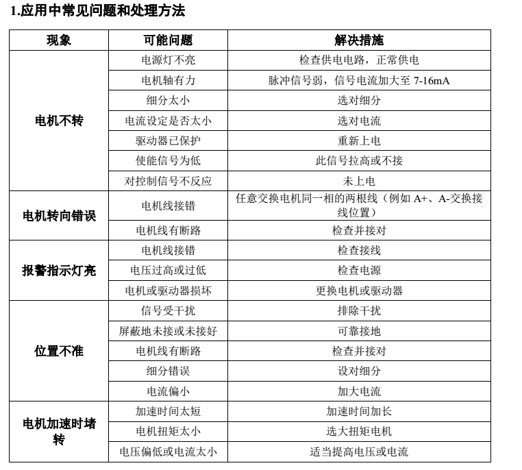 3. 電機驅動器故障時,電機軸失去鎖力。若要恢復正常工作,需確認以上故障消除,然后電源重新上電,電源指示燈變綠,電機軸被鎖緊,驅動 器恢復正常。